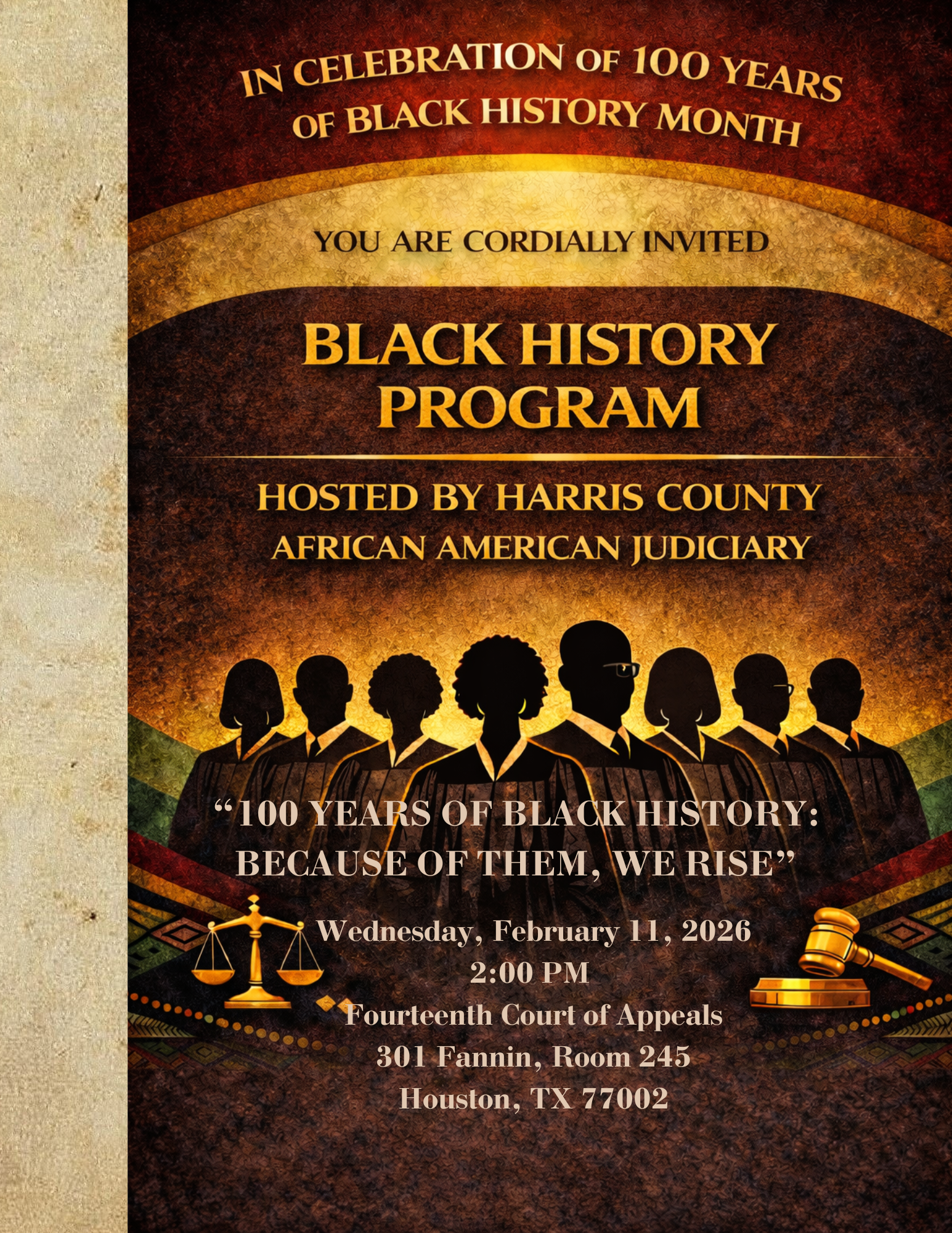 Join the Harris County African American Judiciary, HLA, and HBA for a celebration of Black History. Please complete the form below to register your attendance.