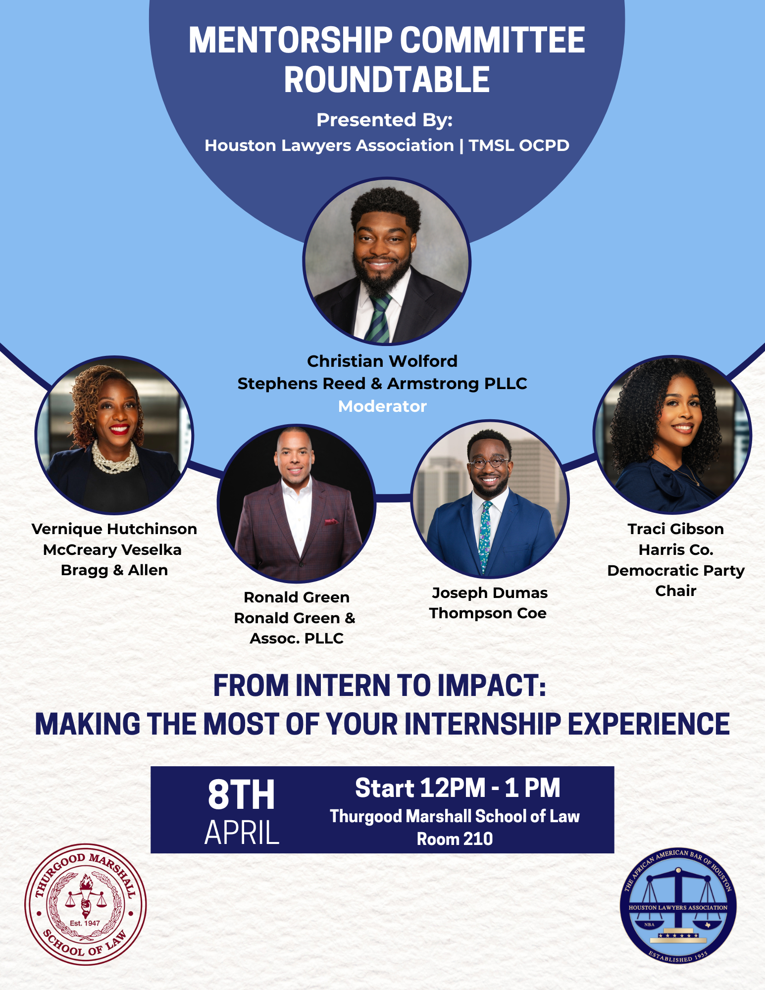 Join the Houston Lawyers Association for our Mentorship Committee’s Roundtable discussion From Intern to Impact: Making the Most of Your Internship Experience. Featuring: